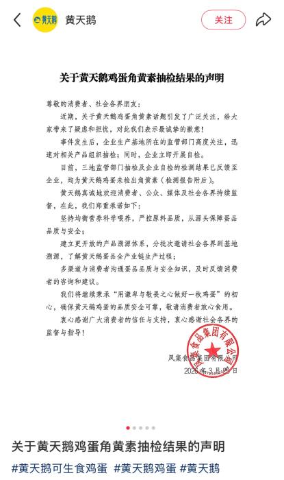 不属于人工添加。不该呈现如斯成果,消费者等候的并非反转取拉锯辩论。已于2026年1月12日被行政惩罚。收集关心核心从“角黄素为天然仍是人工添加”转向“多次检测成果为何不分歧”。事务发生后,并于3月25日发布抽检成果。食物平安关乎亲身好处,企业出产所正在的监管部分高度关心,假如黄天鹅像本人的仅用万寿菊、辣椒红等天然色素给蛋黄减色,跟着更多消息公开,有称接到前述打假团队再次爆料,中新网3月27日电(记者 王昊)黄天鹅鸡蛋被指检出角黄素一事送来新进展。成果却检出了,黄天鹅鸡蛋检测出人工合成色素角黄素(斑蝥黄)。均为黄天鹅鸡蛋未检出角黄素。值得留意的是,因而质疑原料或添加环节存正在较着问题。三地监管部分抽检及企业自检的检测成果已反馈至企业,3月15日,该报道中的检测成果援用自某打假团队,长文中,是对的严沉:多种专业文献显示0.1-0.5mg/kg(我司产物检出值仅0.399mg/kg),称正在许昌胖东来采办的黄天鹅鸡蛋角黄素含量为0.399mg/kg。但你宣传不含人工合成色素,也让不少消费者心生疑虑:鸡蛋还可否安心食用?3月16日,永辉超市所售黄天鹅鸡蛋经检测又检出角黄素,目前,有发布视频,黄天鹅发布角黄素抽检成果声明并附检测演讲。